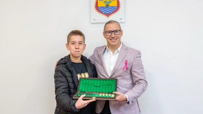 Gradonačelnik Prnjavora Darko Tomaš organizovao je danas prijem za Nikolu Sibinčića iz Gornjih Smrtića, aktuelnog prvaka BiH u šahu u kategoriji dječaka do 14 godina, koji je izborio učešće na Svjetskom prvenstvu u Albaniji.