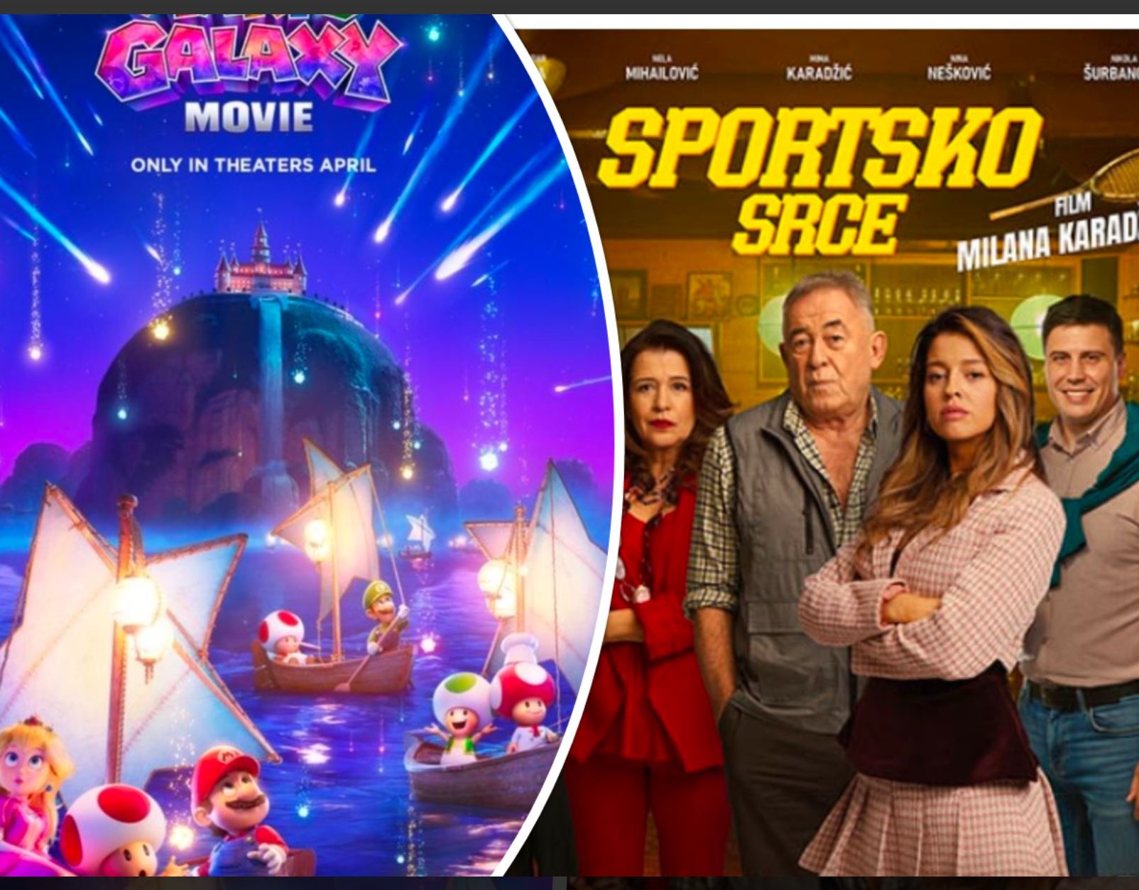 Prva projekcija zakazana je za 18.00 časova, kada će publika imati priliku da pogleda animirani film „Super Mario Galaktički Film“. Riječ je o avanturi inspirisanoj svijetom Super Mario Bros., koja donosi novu priču, mnogo akcije i prepoznatljive likove. Film je nastavak ostvarenja „Super Mario Braća Film“, koje je premijerno prikazano 2023. godine i ostvarilo veliki uspjeh kod publike širom svijeta. Režiju potpisuju Aaron Horvat i Majkl Jelenik, scenario Metju Fogel, a film traje 98 minuta. Žanrovski pripada akcionoj komediji i prikazuje se u sinhronizovanoj verziji.