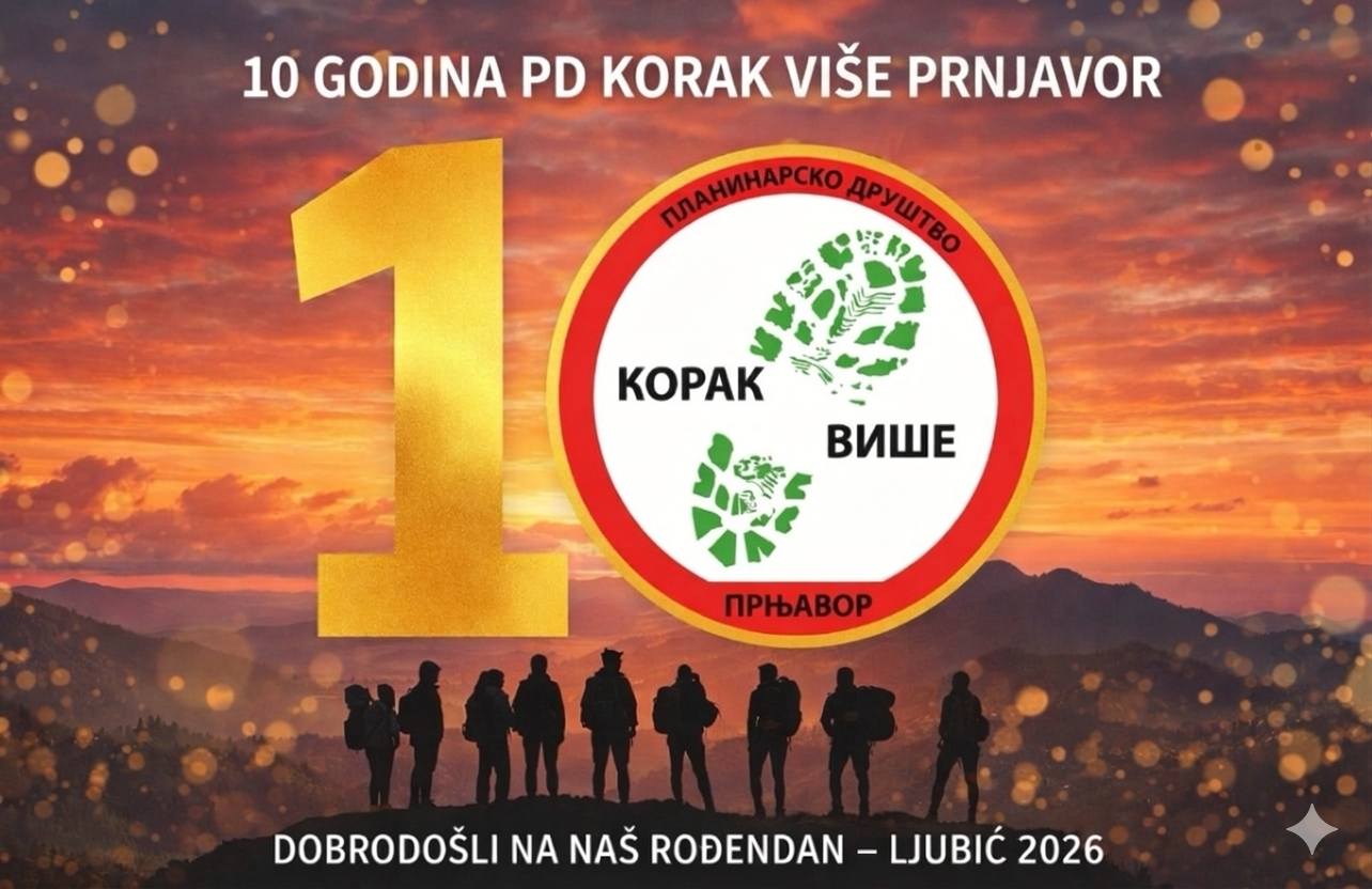 Planinarsko društvo „Korak Više“ iz Prnjavora povodom obilježavanja desete godišnjice rada sa ponosom organizuje jednodnevnu planinarsku akciju pod nazivom „Ljubić 2026 – 10. rođendan“, koja će biti održana u nedjelju, 5. aprila 2026. godine.