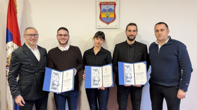 Grad Prnjavor danas je nagradio sa po 5.000 KM troje najboljih studenata – Danila Božunovića, Laru Lukanović i Kristijana Jovića.