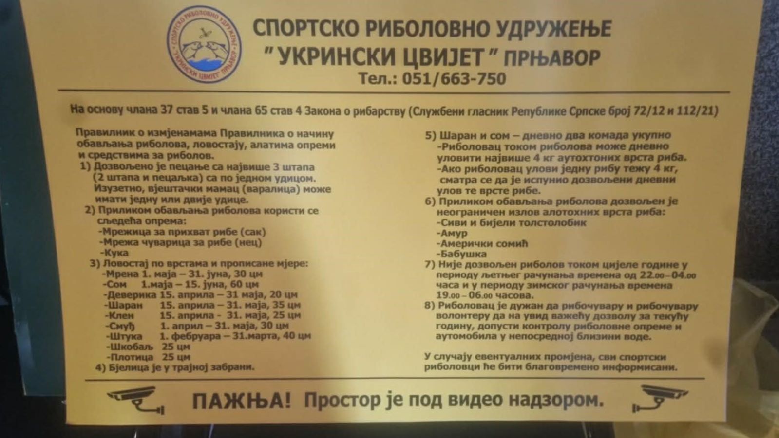Rukovodstvo SRU „Ukrinski cvijet“ pozvalo je savjesne ribolovce da posebnu pažnju obrate na zabranu izlova ribe ispod dozvoljene mjere, kao i na poštovanje lovostaja i perioda mrijesta određenih vrsta. Istaknuto je da je neophodno pridržavanje pravilnika o izlovu, kako bi se sačuvale riblje vrste i osiguralo dugoročno očuvanje prirodnih resursa.
