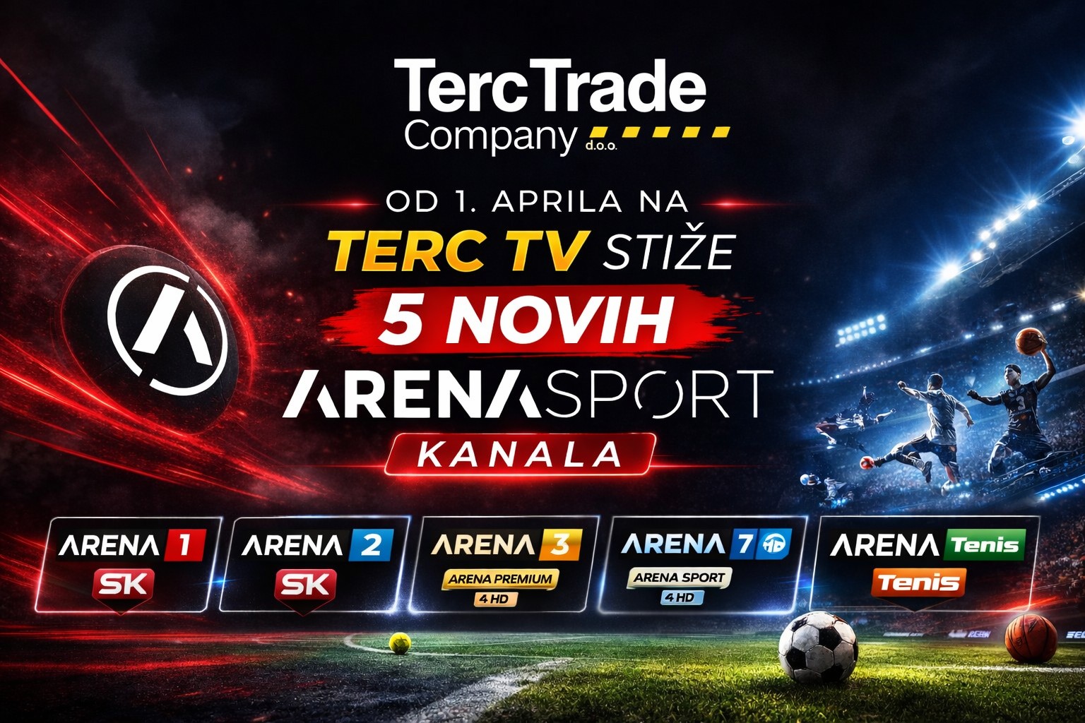 Od 1. aprila 2026. godine svi ljubitelji vrhunskog sporta na TERC TV kablovskoj mreži mogu očekivati još bogatiji i sadržajniji program, jer počinje emitovanje novih sportskih kanala koji će dodatno obogatiti ponudu.